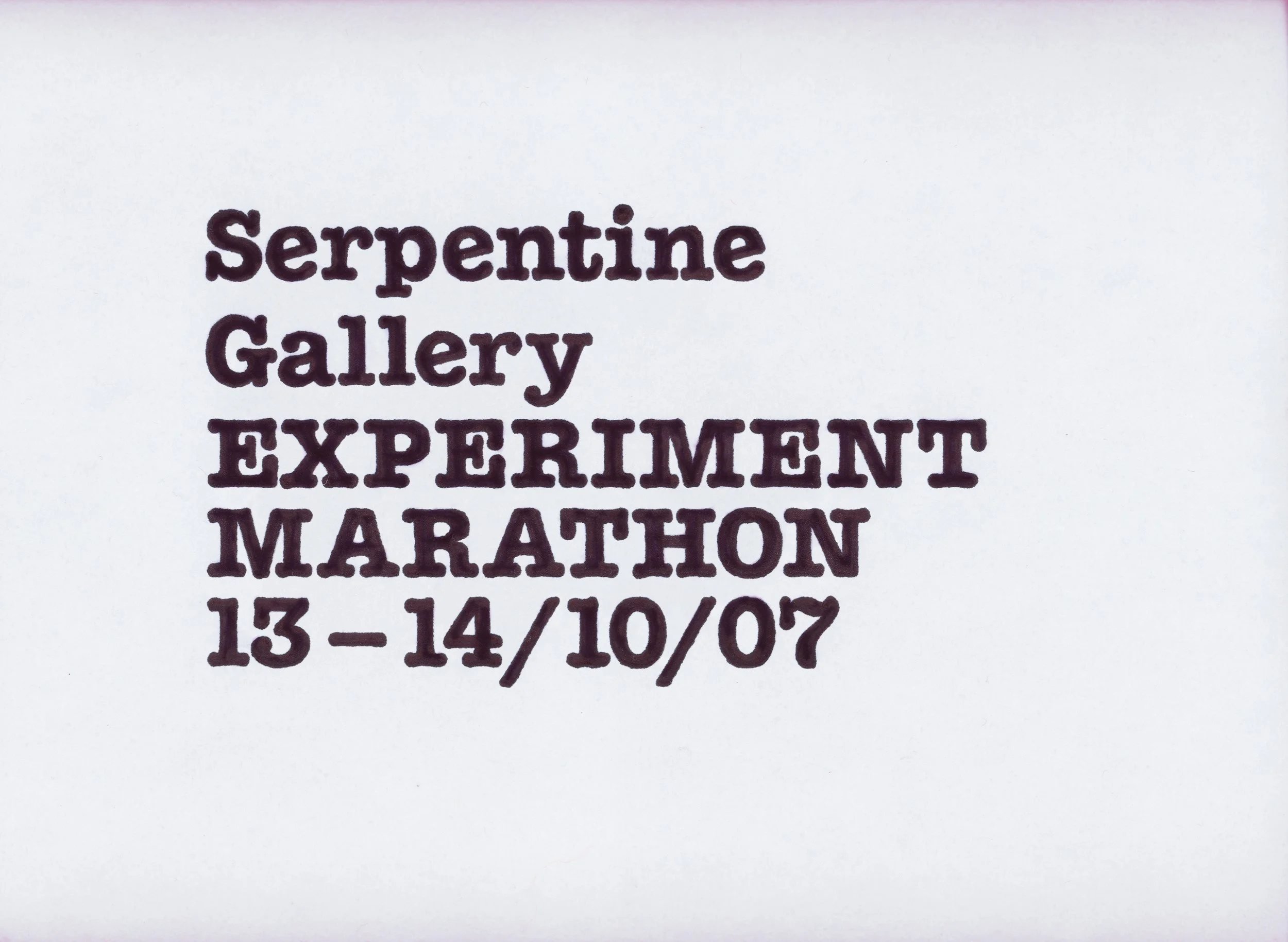 Serpentine Gallery Experiment Marathon 2007 – Presented by Olafur Eliasson and Hans Ulrich Obrist